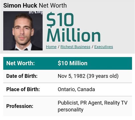 As of 2023, Simon Huck's net worth is estimated to be around $50 million. His success in the media industry has allowed him to accumulate a substantial amount of wealth, and his business ventures continue to add to his net worth. From his early beginnings as a publicist to his current status as a media mogul, Huck's journey to success is a testament to his hard work and dedication.